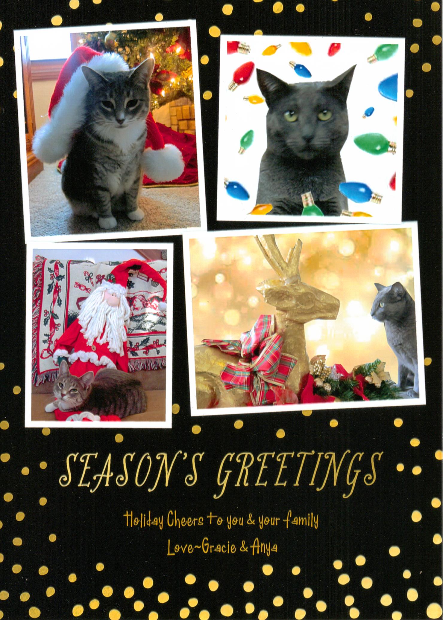 I love how you presented all the cards! At first glance, I thought it was the blog hop grid MOL. Merry Christmas to you and all the kitties!
